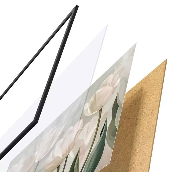 Постер складається з рами, оргскла, надрукованого зображення та підкладки з ДСП. Завдяки кріпленням на звороті плакат можна одразу ж повісити на стіну.
