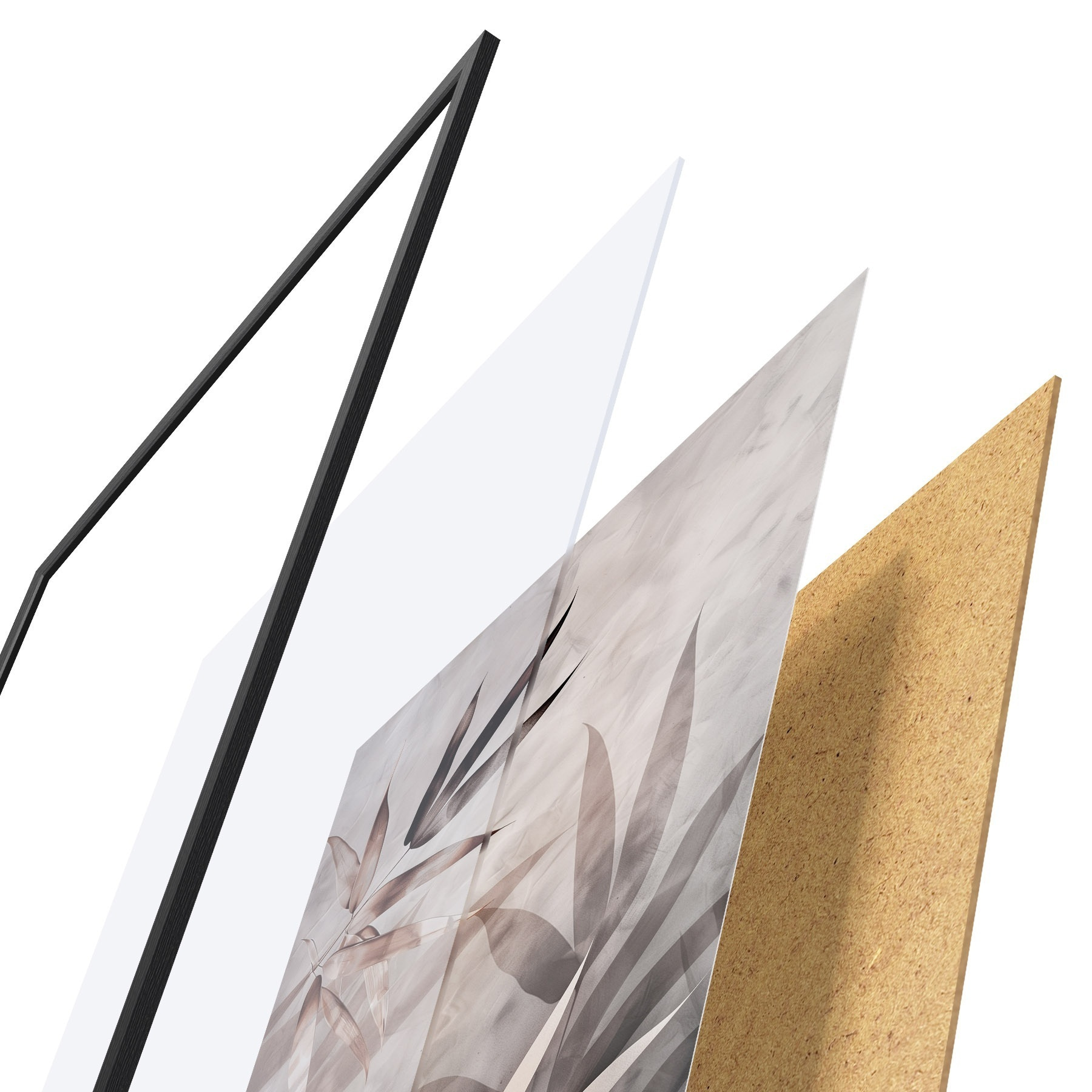Постер складається з рами, оргскла, надрукованого зображення та підкладки з ДСП. Завдяки кріпленням на звороті плакат можна одразу ж повісити на стіну.