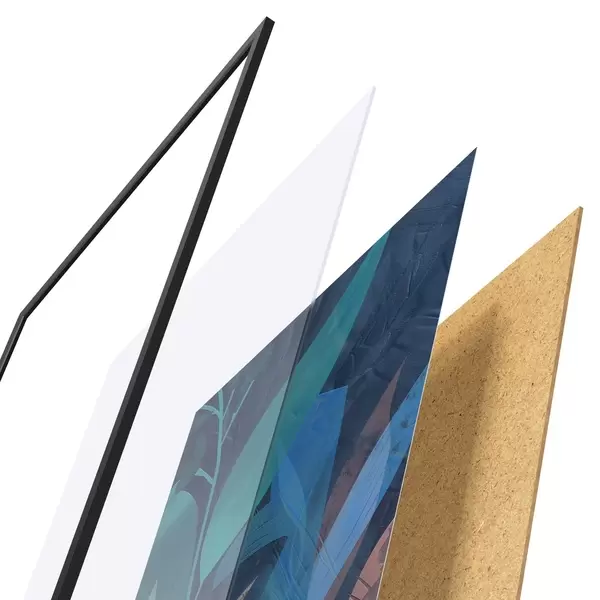 Постер складається з рами, оргскла, надрукованого зображення та підкладки з ДСП. Завдяки кріпленням на звороті плакат можна одразу ж повісити на стіну.