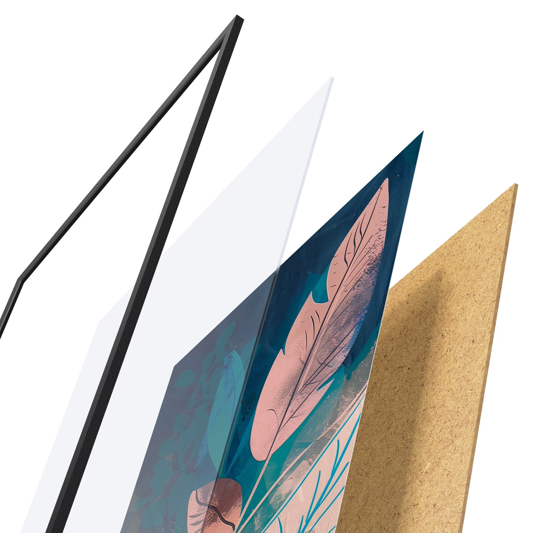 Постер складається з рами, оргскла, надрукованого зображення та підкладки з ДСП. Завдяки кріпленням на звороті плакат можна одразу ж повісити на стіну.
