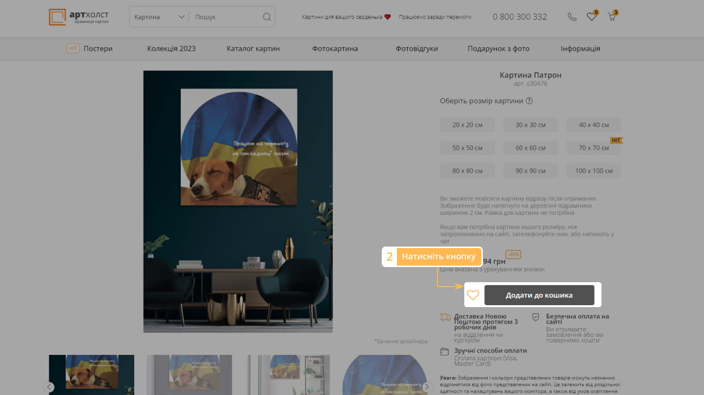 1. Виберіть розмір картини