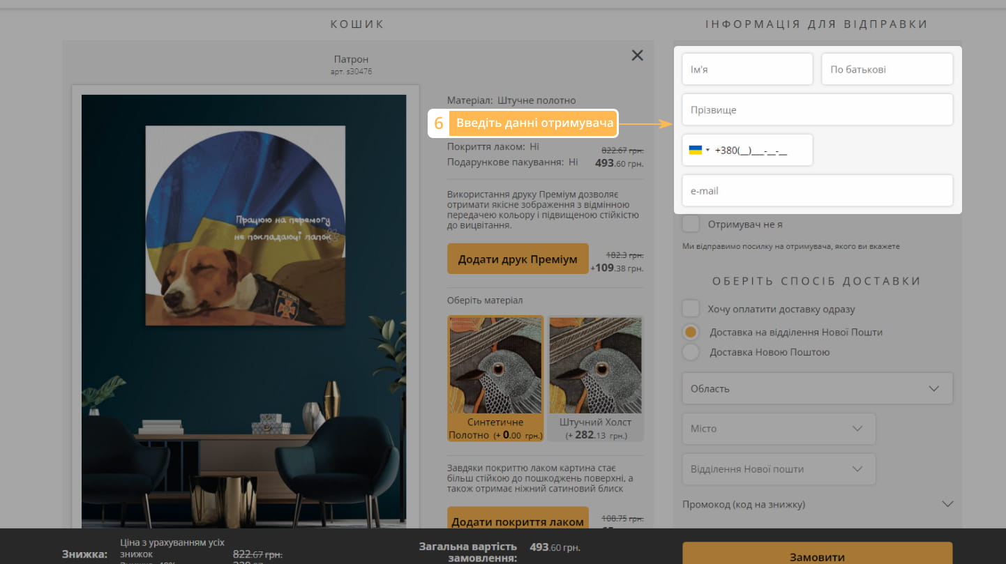 6. Введіть данні отримувача